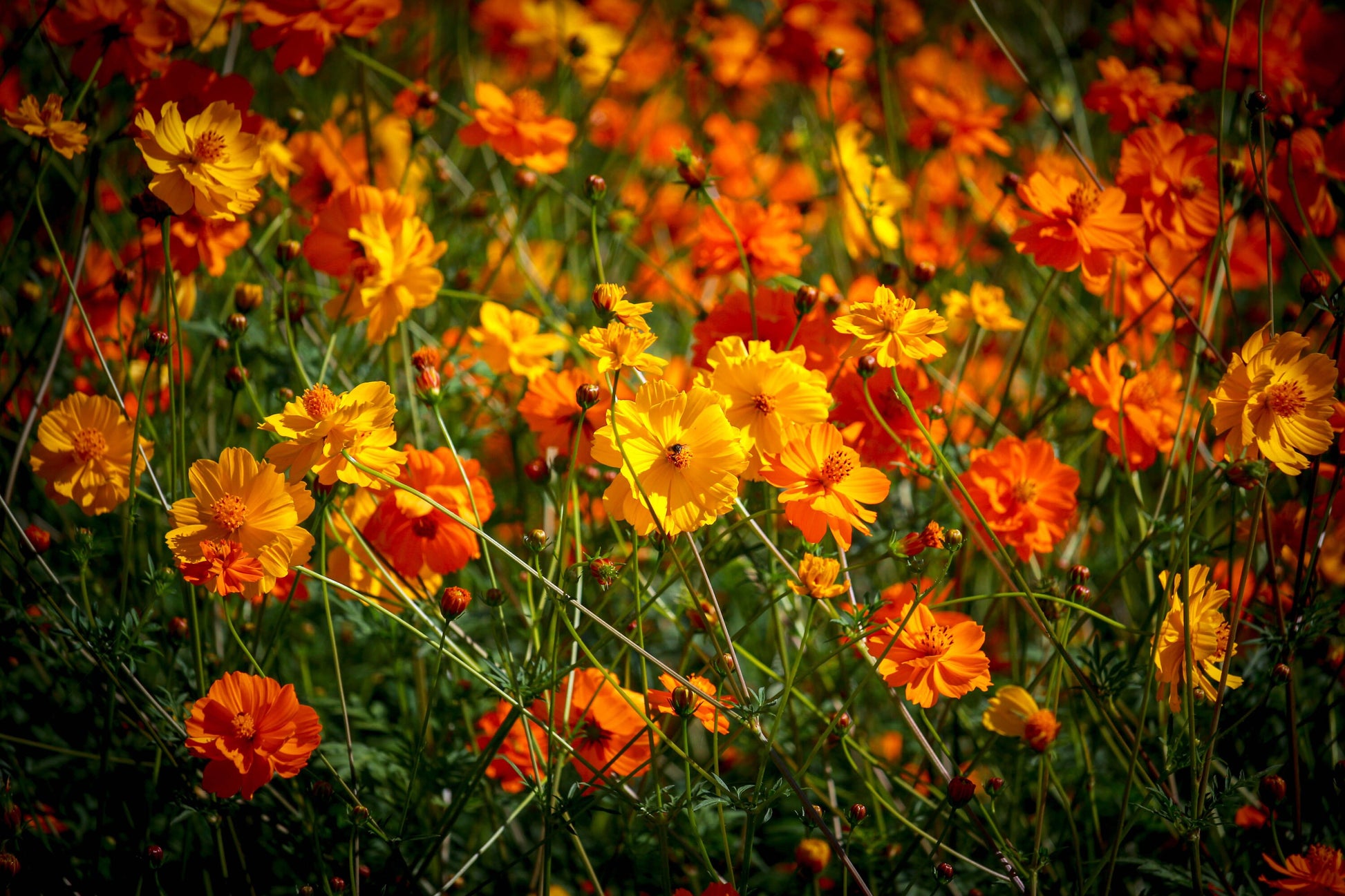 Cosmos is a staple for any cut flower garden. Light up the landscape with these cheerful red, orange, and yellow blossoms that are shorter than most Cosmos varieties. This easy-to-grow annual will reward the gardener who does not have much time to fuss with plants. They are heat tolerant and will grow great in poor soil.