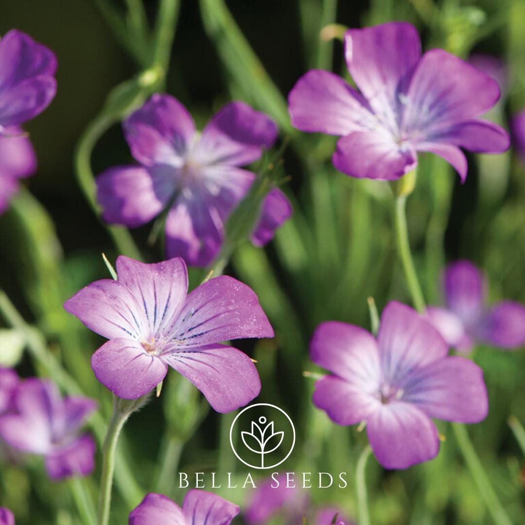 Agrostemma Purple Queen (also known as corn cockle) has light purple speckled blooms on long graceful stems with silvery-gray foliage. The plants are a cool flower, preferring the cool temperatures of spring. The blooms are delicate 1-2" wide.