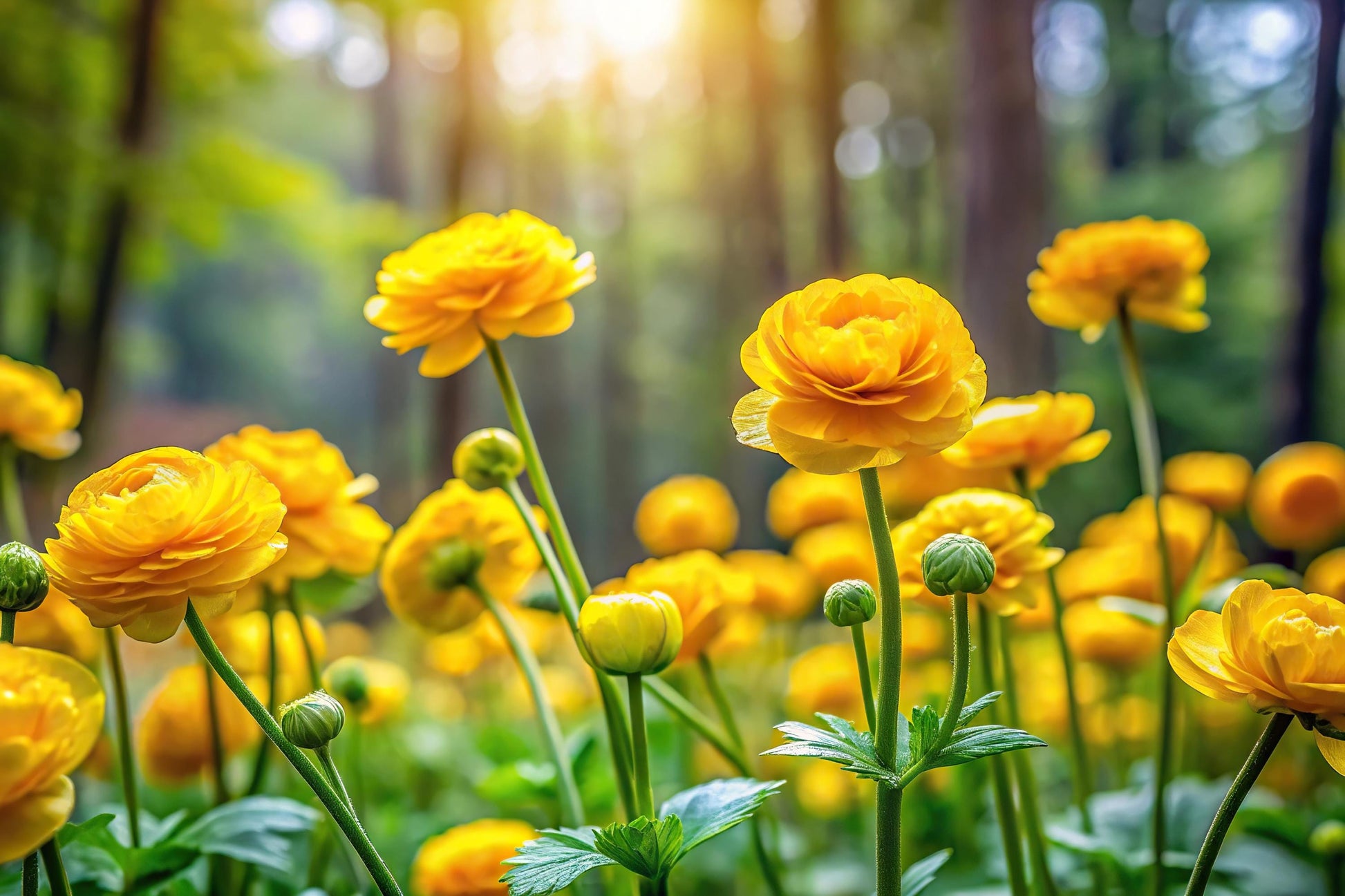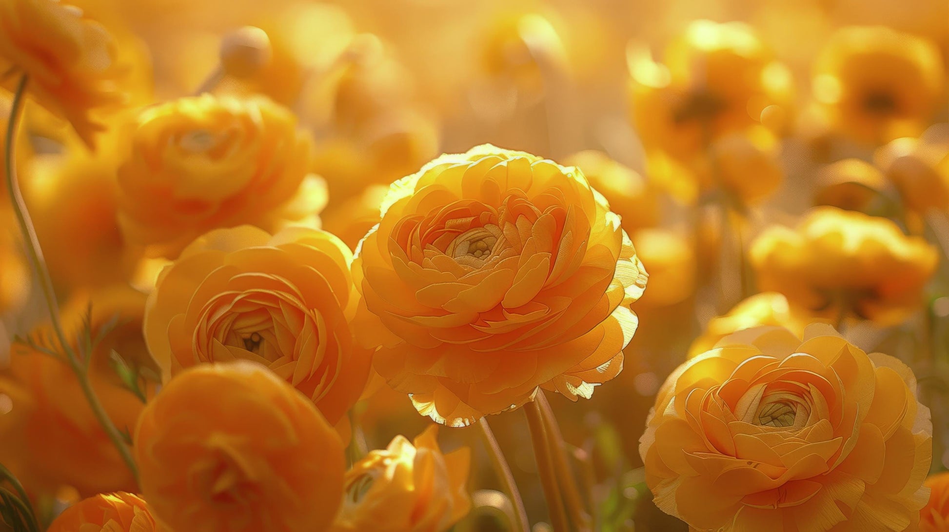 Amandine Gold ranunculus flowers present with prominent gold-colored blooms. These beautiful flowers have fully double petals and charming ruffled appearance that make the variety so beloved. The plants produce numerous flowers on strong stems, making them well-suited for cutting and creating beautiful rose-hued bouquets. Their long vase life allows the beauty of these gold-colored amandine ranunculus to be enjoyed indoors for a significant time. Whether a soft blush or a more distinct rose, these flowers bring a touch of romantic elegance to any garden or floral arrangement with their delightful color and form.