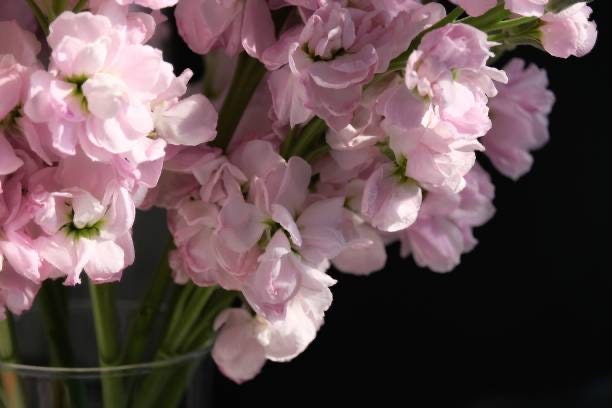 Harvest when 1⁄3–1⁄2 of the florets on the stem are open. When properly cared for, Stock can last up to a week in a vase. The flowers are also edible, with a peppery, clove-like flavor that lends itself well to use as a garnish on salads, desserts, and drinks. Flowers can be eaten whole, as the base does not impart bitter or other off-flavors; nor is it tough.