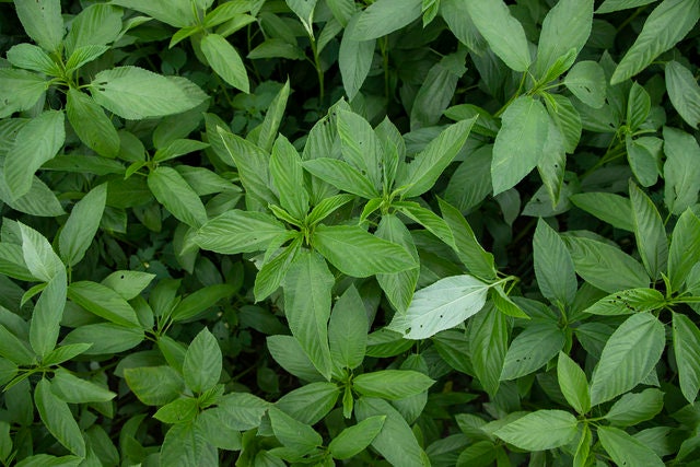 Thai basil is a variety of basil native to Southeast Asia. It is widely used in Thai, Vietnamese, and other Asian cuisines for its distinctive flavor, which is slightly spicy and licorice-like with hints of mint and cloves. The leaves of Thai basil are glossy and deep green, with purple stems and flowers. It adds a unique aromatic touch to dishes and is often used in stir-fries, curries, and noodle dishes.